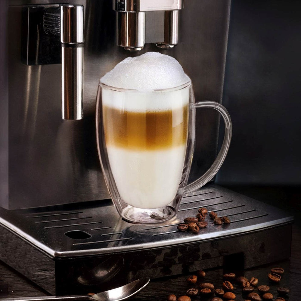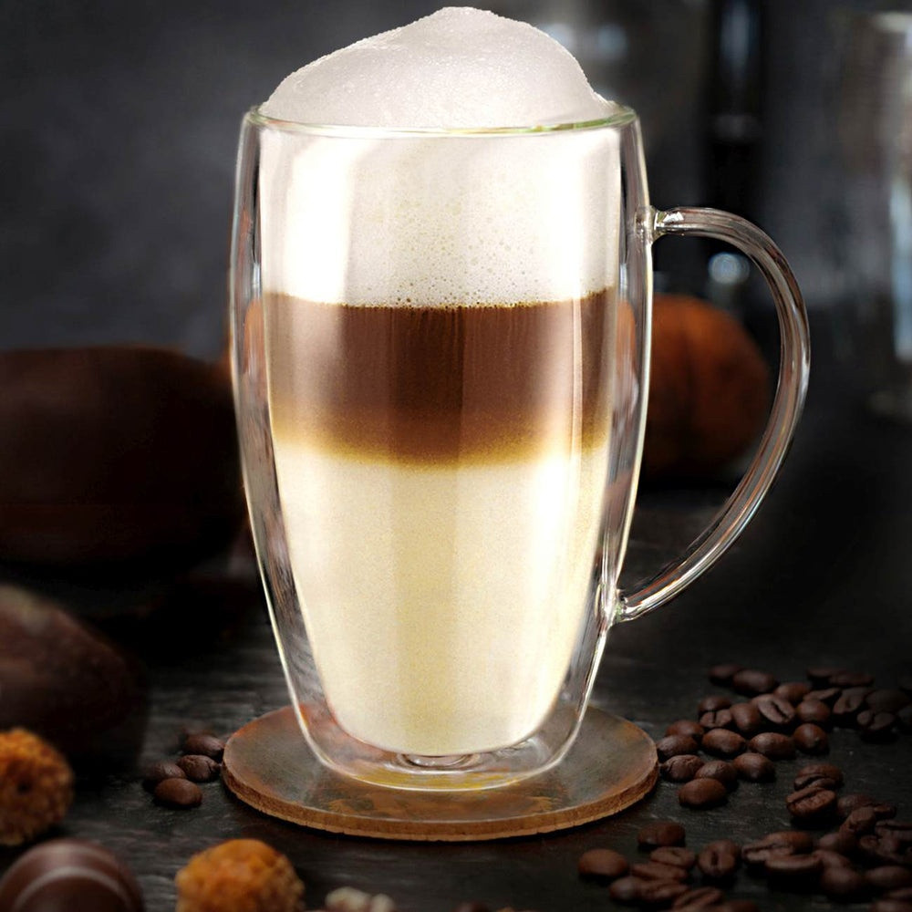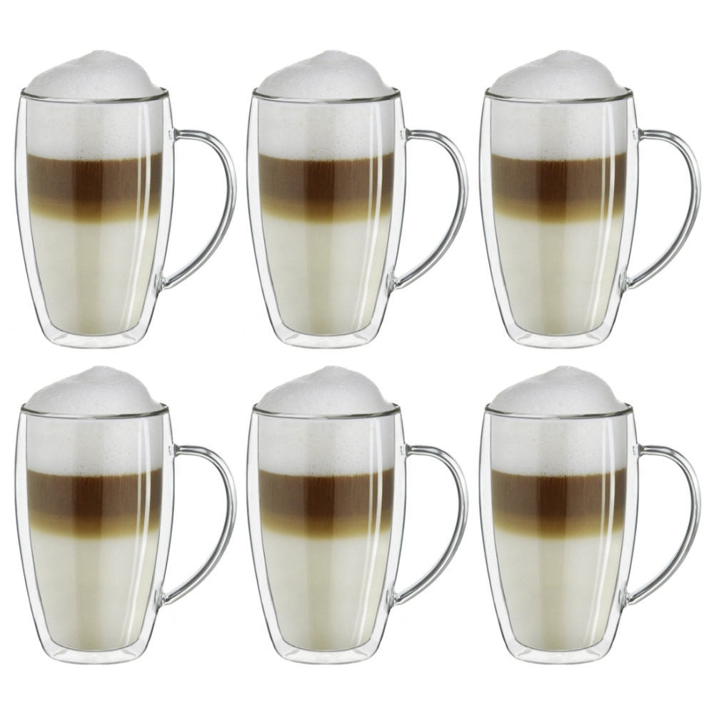 Set 6 cani termice Creano DG-SHH, 400 ml, sticla borosilicata, perete dublu, cu maner